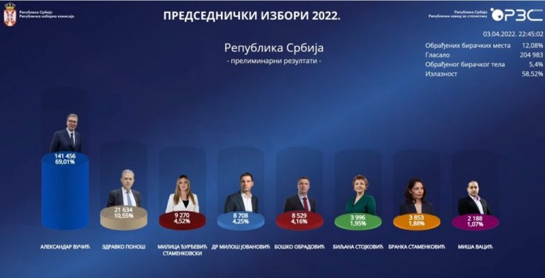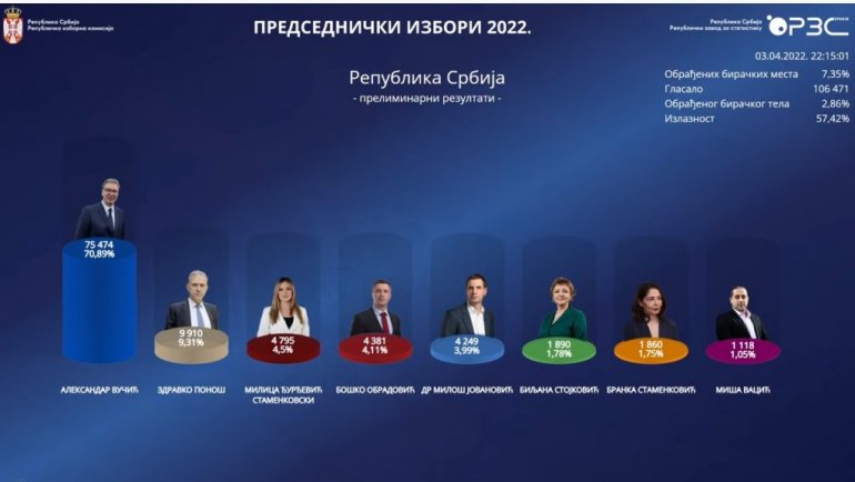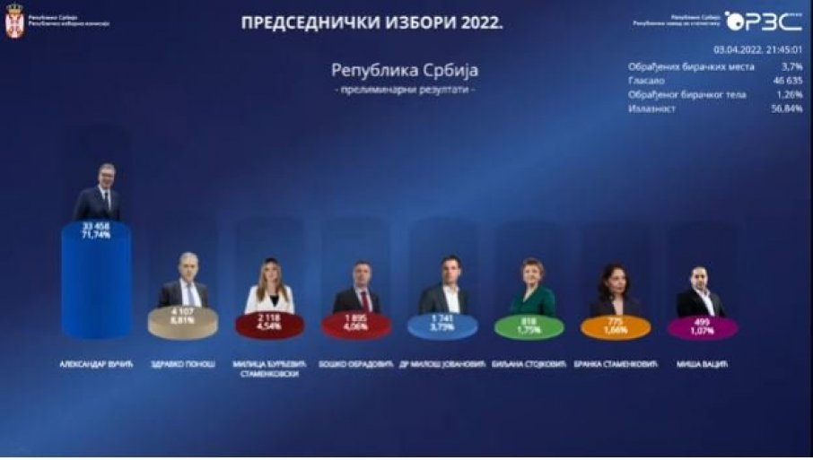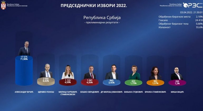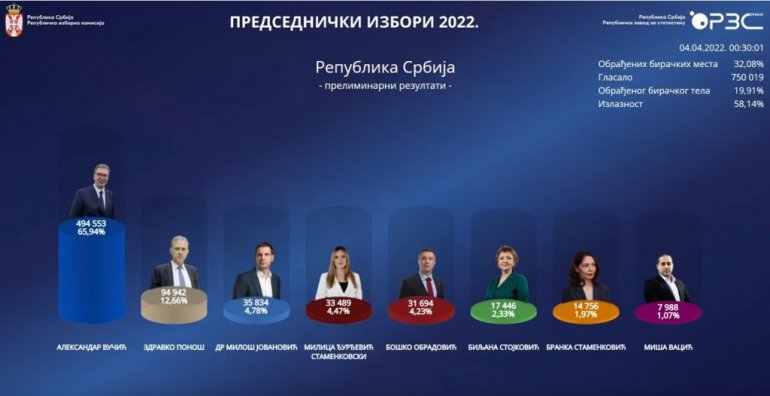ZVANIČNI REZULTATI RIKA: Obrađeno 32,08 odsto biračkih mesta - Vučić preko 65 odsto glasova