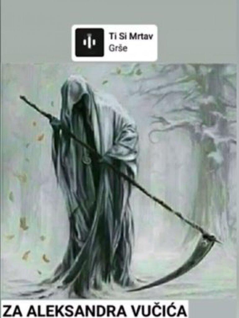 Naime, on je objavio ilustracije „kosača” koji simbolizuje smrt uz opis „Za Aleksandra Vučića”, a koju prati bizarna pesma!