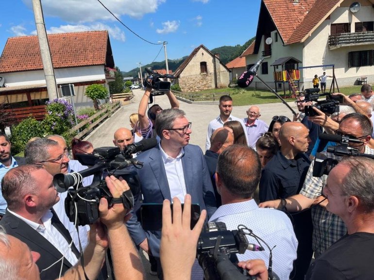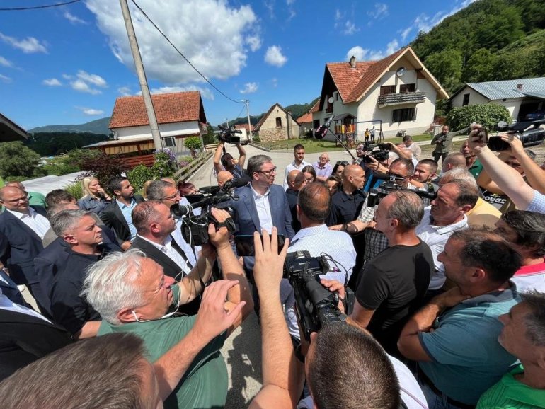 Predsednika su u mestu Odvraćenica sačekali brojni meštani. Oni su nosili srpske zastave. Građani su hteli da porazgovaraju sa predsednikom.