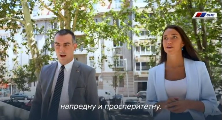Kako se u spotu, u kome se pojavljuju mladi potpredsednici SNS, Nevena Đurić i Vladimir Orlić, poručuje, "Vučić šiti naše vitalne državne i nacionalne interese i obezbeđuje i finansijski napredak i prosperitet".