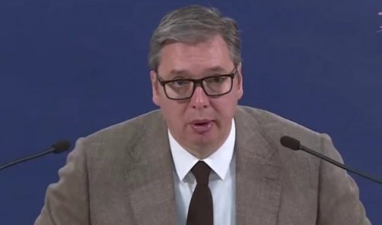- Juče su uhapšeni momci zato što su nosili majicu Nema predaje, u skladu sa Ustavom Republike Srbije u koji veruju. To je valjda strašan zločin. Za Vidovdan je uhapšen mladić iz Beograda od 20 godina, zbog navodnog raspirivanja mržnje, zato što je imao zastavu i pevao patriotske pesme. Jer valjda ne smete da pevate pesme koje se ne dopadaju Kurtiju i koje nije odobrila KVINTA - naveo je predsednik spominjući još mnoga privođenja i maltretiranja Srba - rekao je Vučić.