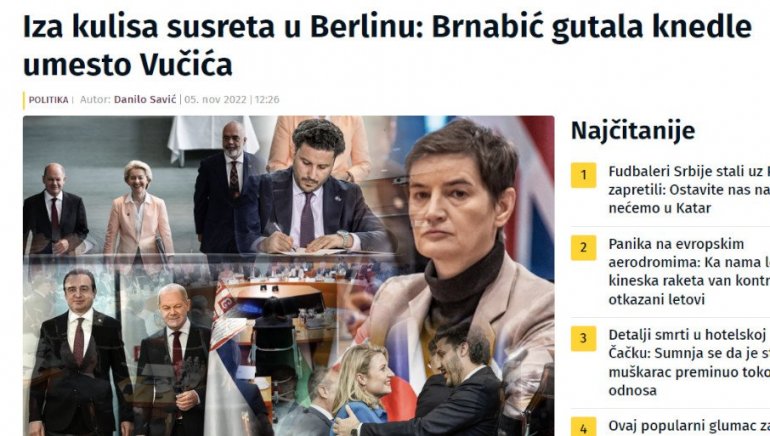 Oni pišu kako je tobože premijerka Ana Brnabić gutala knedle umesto predsednika Vučića, dok je iznosila poziciju Srbije pred evropskim liderima koji ne žele da obuzdaju Aljbina Kurtija.