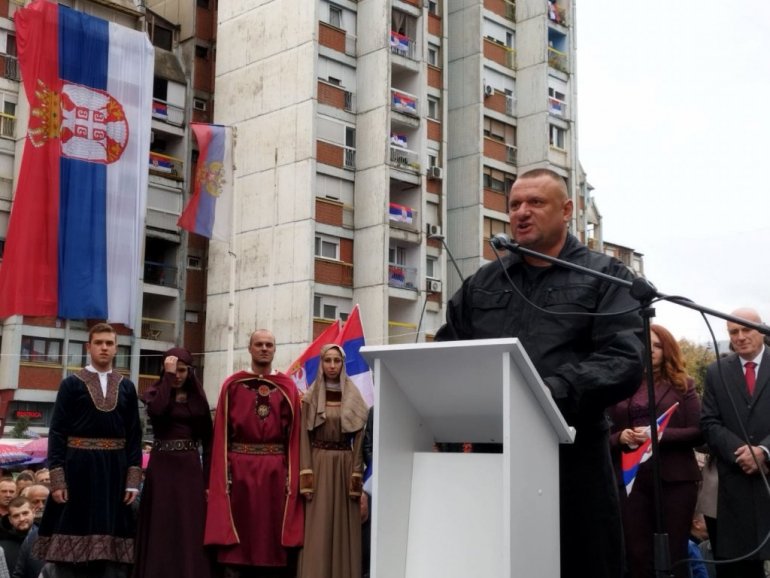 Uz himnu "Bože pravde" započeo je skup na kojem se, između ostalih, obratio i major Nenad Đurić, smenjeni komandir regionalne policije koji je odbio Kurtijev nalog da udari na svoj narod.