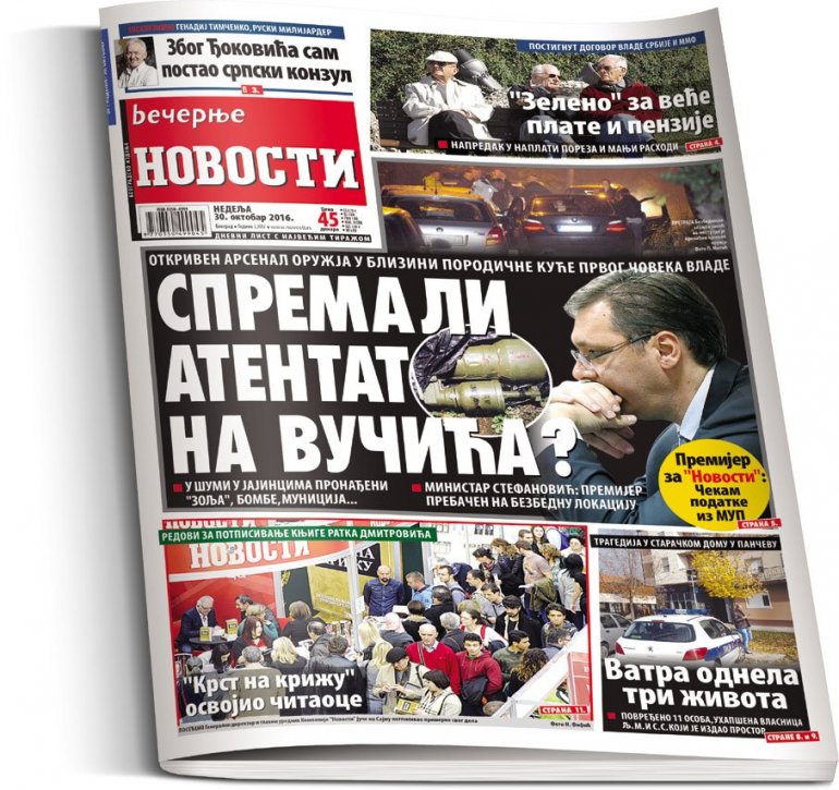 "Novosti" su još u januaru ove godine pisale da postoje sumnje da je kriminalna ekipa Belivuka i Miljkovića, koja je navodno u jakim vezama sa Zvicerom i "kavačkim klanom", pripremala atentat na predsednika Srbije. Napad je trebalo da bude izveden na kružnom toku na Topčideru, i to mitraljezom postavljenim u kamion.