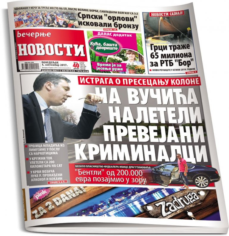 Tako su trojica mladića u "bentliju" udarila 2. septembra 2017, u ranim jutarnjim satima, u automobil predsednika Vučića na kružnom toku na Topčiderskoj zvezdi. Zalaufani automobil se zbog zadnje vuče praktično kretao postrance, naleteo na kolonu pod pratnjom, ali se nakon udara u vozilo u kojem je bio predsednik, nije zaustavio. Nepunih godinu dana pre toga, 29. oktobra 2016, policija je u blizini kuće Vučićevih, u Jajincima, pronašla veću količinu oružja.