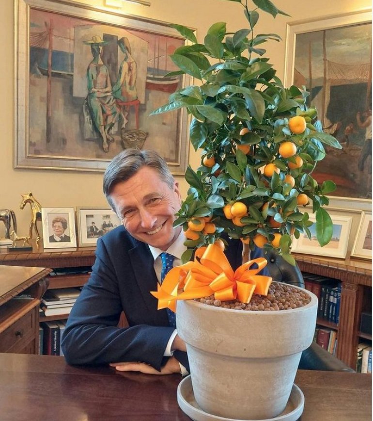 Obožavam drvo limuna, ali je moj prostor previše topao za njega, pa je kompromis ova opcija koju su mi poklonili - drvo mandarine - napisao je Pahor ispod fotografije poklona koju je podelio sa svojim pratiocima na društvenim mrežama.