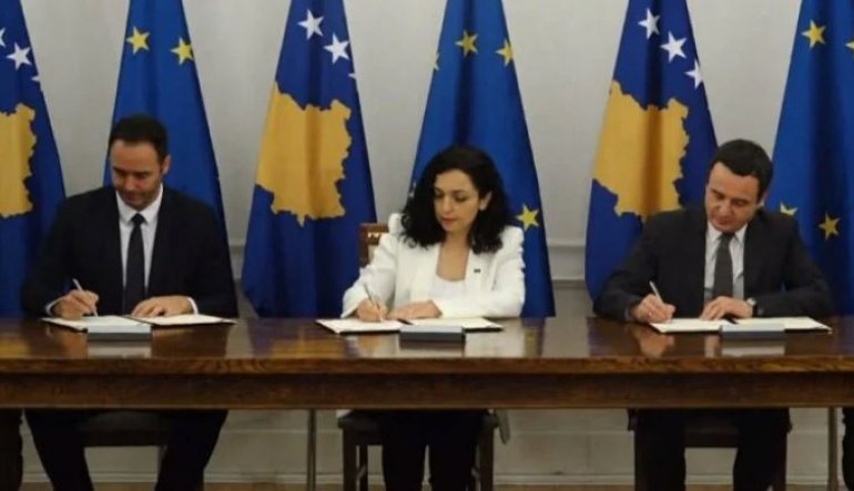 Konjufca, Osmanijeva i Kurti na potpisivanju, Foto "Tviter"