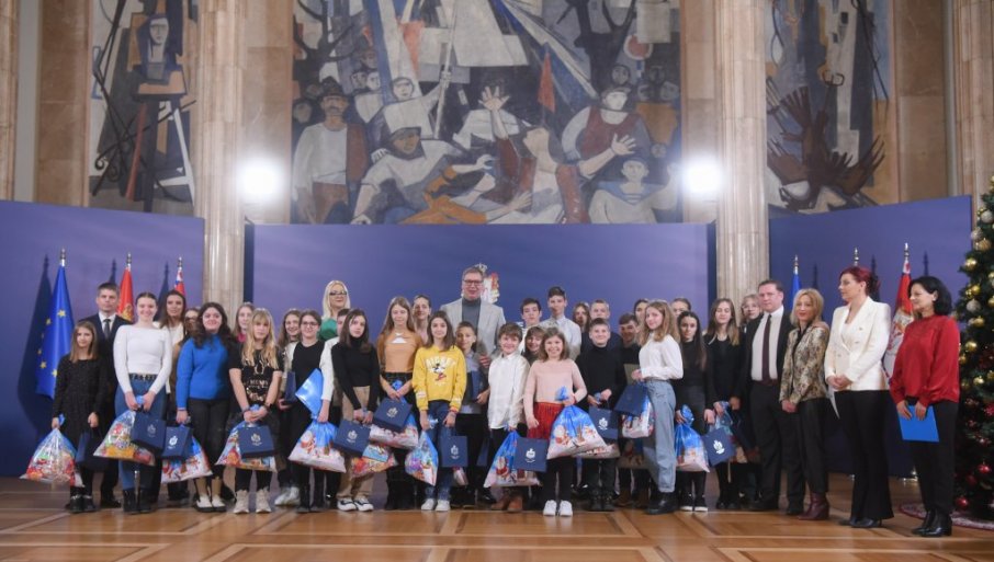 PREDSEDNIK Srbije Aleksandar Vučić primio je danas na Badnji dan decu srpske nacionalnosti iz Slovenije, koja borave u poseti Beogradu povodom Božićnih praznika.