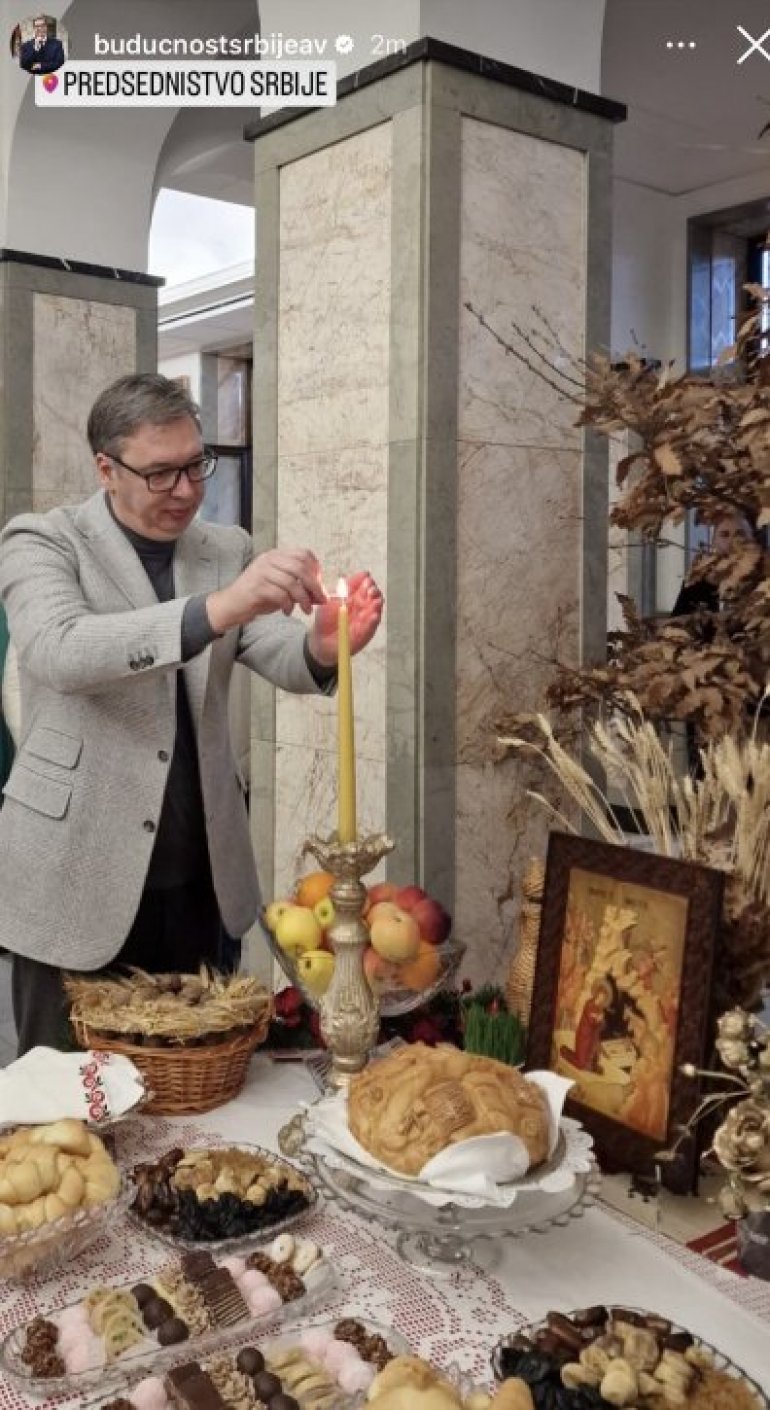 - Želim svima srećnu Novu godinu i predstojeći Božić. Našem narodu, posebno na Kosovu i Metohiji i Republici Srpskoj, želim dobro zdravlje, da ostanu svoj na svome, da čuvaju svoja srpska ognjišta, a Srbija će uvek biti uz njih. Verujem da ćemo mi Srbi uspeti da sačuvamo i sebe i svoju otadžbinu, i celinu svoga naroda. Živela Srbija, srećan Badnji dan i Hristos se rodi - objavio je predsednik na svom Instagram profilu.