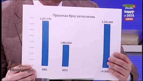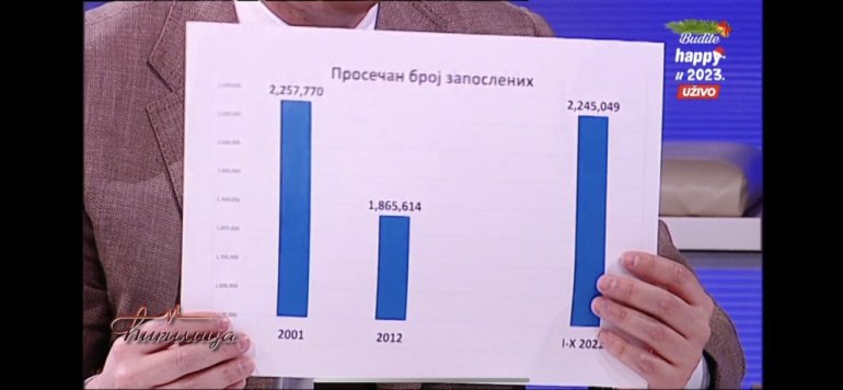 Vučić kaže da je broj zaposlenih 2001. bio 2.257,770, 2012. je bio 1.865,614 a danas 2.245,049.