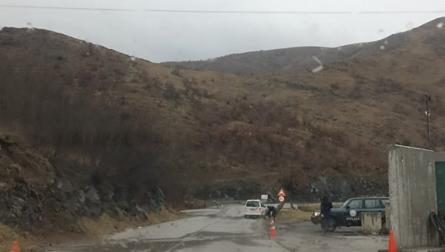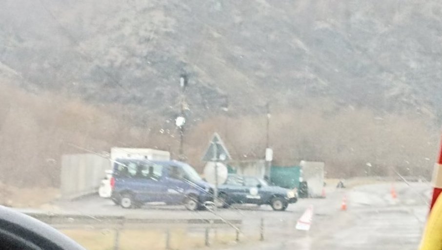 Dvojica pripadnika tzv. policije Kosova, od kojih je jedan naoružan, su na nelegalnom punktu uz put koji su suzili čunjevima i sporadično kontrolišu vozila. Ostali su u vozilima, u džipu i policijskom automobilu. Ne putu Kosovska Mitrovica – Leposavić ima manje vozila nego inače, kako zbog kiše koja pada, tako i zbog šikaniranja koje Srbi trpe, zbog KM tablica, od priPpadnika tzv. policije Kosova.