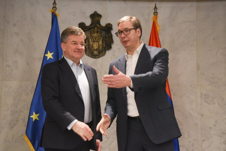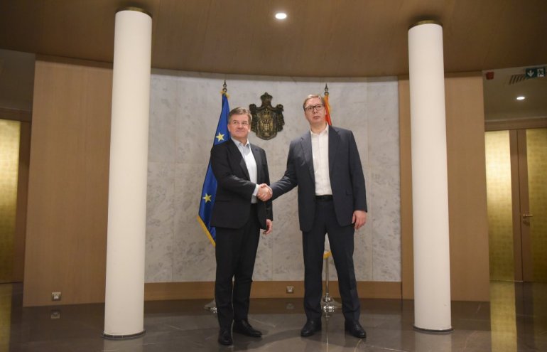 Predsednik Srbije Aleksandar Vučić sastao se večeras u Beogradu sa specijalnim predstavnikom EU za dijalog Beograda i Prištine, Miroslavom Lajčakom.
