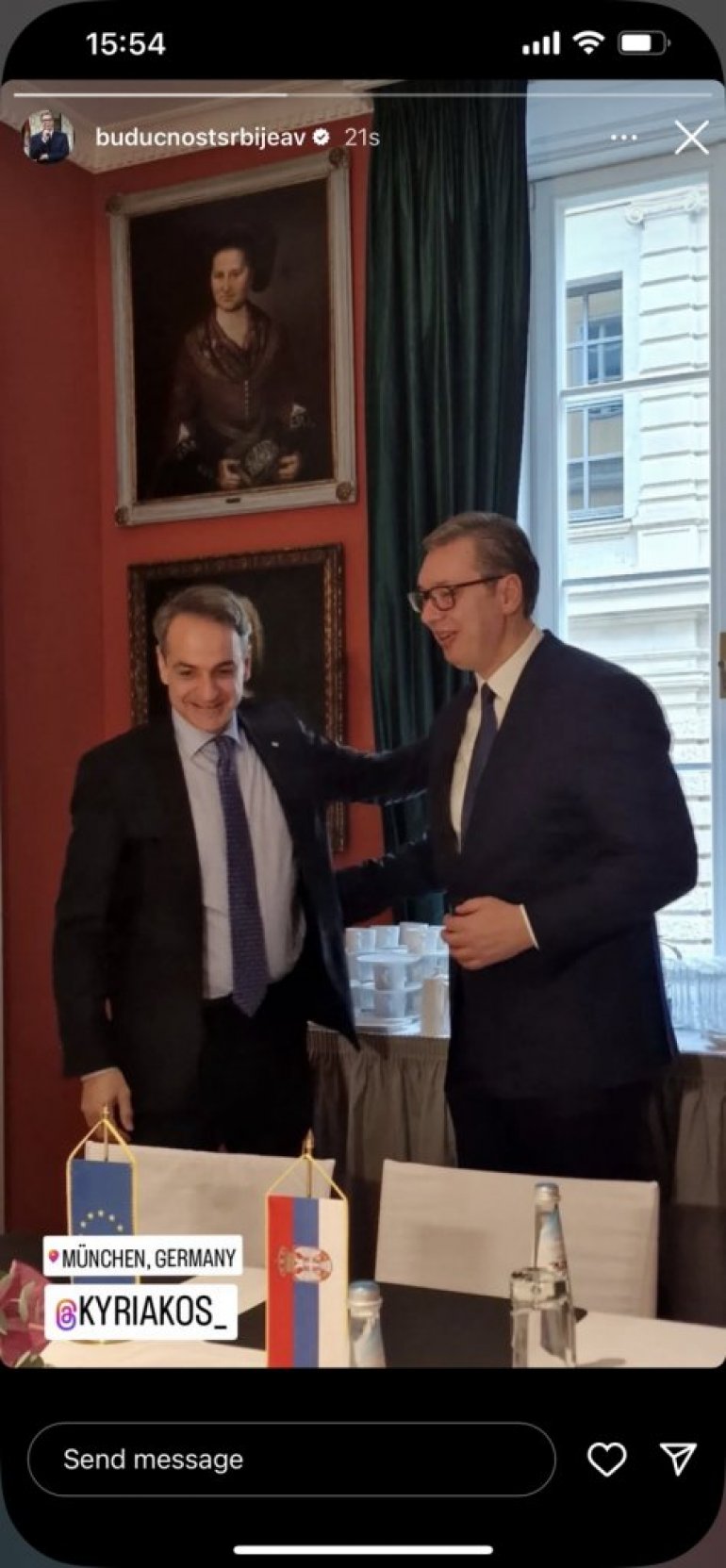 Predsednik Srbije sastao se u Minhenu sa predsednikom Vlade Republike Grčke Kirjakosom Micotakisom.