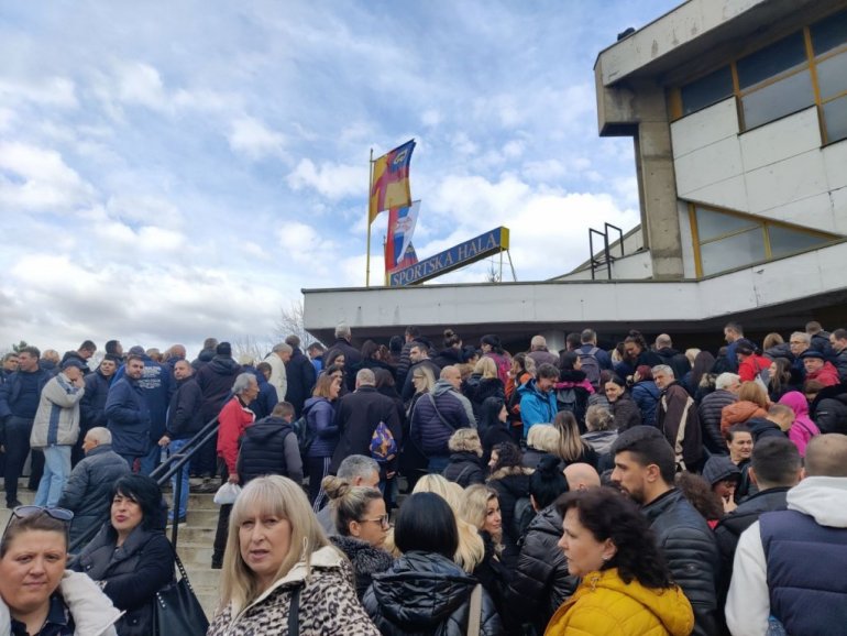 Veliki broj Vranjanaca čeka obraćanje predsednika Vučića. Hala sportova u tom gradu je potpuno puna, zbog čega mnogi meštani nisu mogli da uđu u halu.