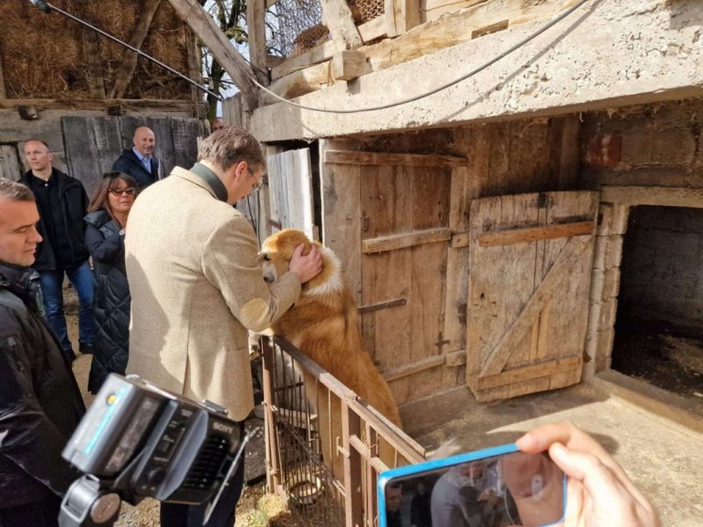 Predsednik je iskoristio priliku i da u štali Stamenkovića pomazi čuvara domaćinstva - Čupku.