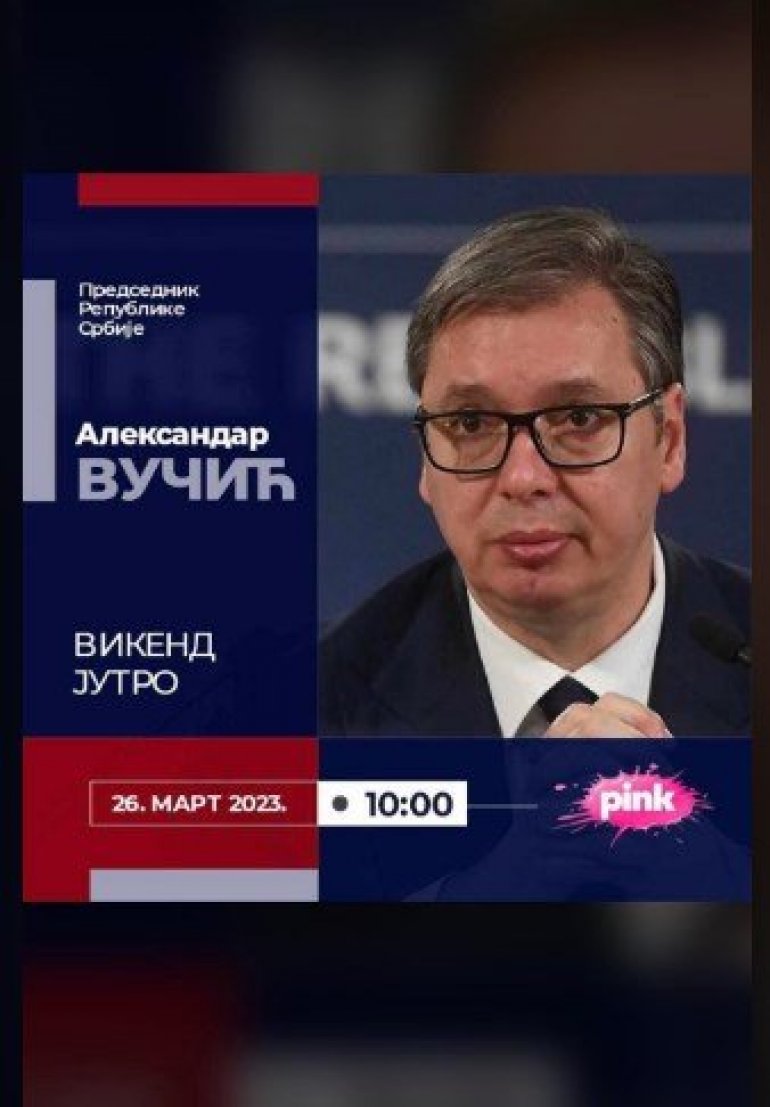 PREDSEDNIK Srbije Aleksandar Vučić o najvažnijim temama govoriće sutra ujutru na televiziji Pink.