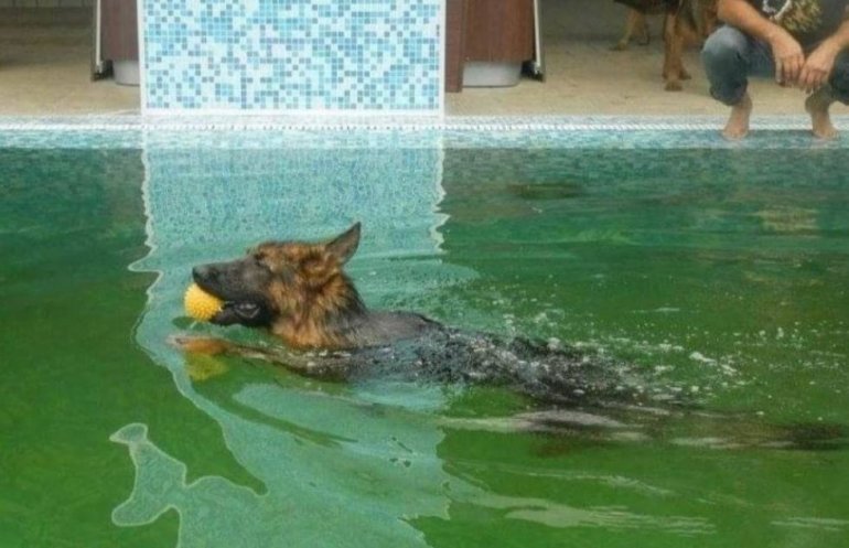 Na slici ovekovečena scena nemačkog ovčara kako se kupa u bazenu nekada luksuznog hotela, a danas sramnog urabanističkog rugla u centru grada, pre nekoliko godina isplivala je u javnost izazvavši nevericu i zgražavanje građana.