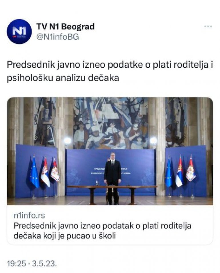 Ovome svedoči tekst objavljen na portalu "N1info", gde su istakli kako je predsednik "javno izneo podatke o plati roditelja i psihološku analizu dečaka".