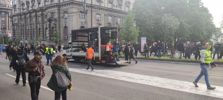 Za pripadnike takozvanih "slobodnih medija", obezbeđen je specijalni kamion sa kog izveštavaju.