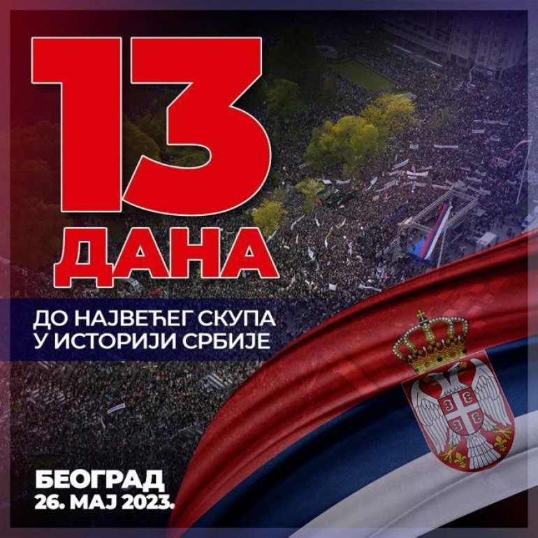 - Pozivamo sve građane Srbije da 26. maja, dan uoči velikih i važnih odluka za Srbiju, u odbranu slobodarskih, demokratskih vrednosti naše Srbije, da dođu na najveći skup ikada održan u Srbiji. Održaćemo ga ispred Narodne skupštine ili na Trgu Republike u Beogradu 26. maja u poslepodnevnim satima. Pozivamo sve ljude koji žele dobro Srbiji, koji žele da sačuvamo Srbiju, da je odbranimo od onih koji bi da je uruše i da je unište po svaku cenu i da pokažemo na miran, dostojanstven, ponosan i demokratski način da Srbiju niko ne može da oduzme njenim građanima - rekao je tada Vučić.