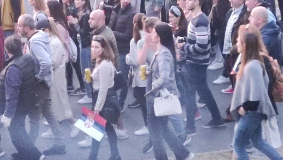 Opet se vide pristalice opozicije koje piju alkoholna pića, sve to verovatno u cilju "odbrane dece i borbe protiv nasilja".