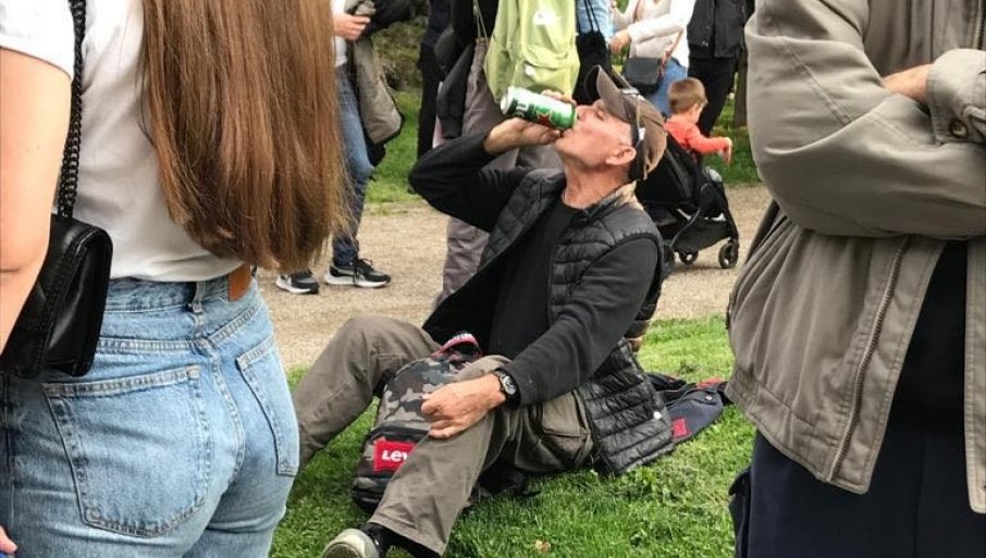 Opet se vide pristalice opozicije koje piju alkoholna pića, sve to verovatno u cilju "odbrane dece i borbe protiv nasilja".
