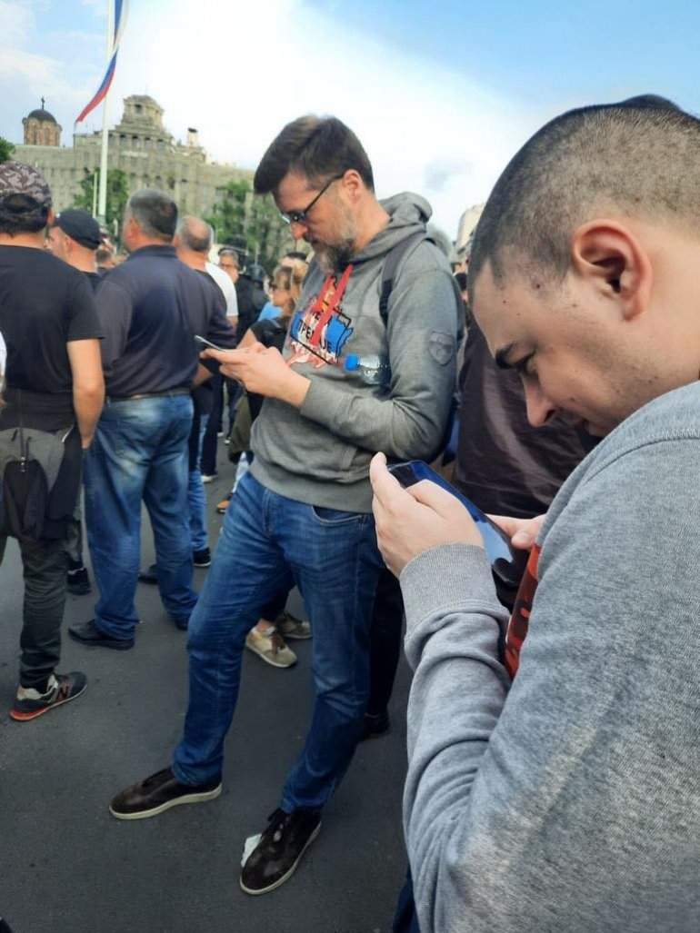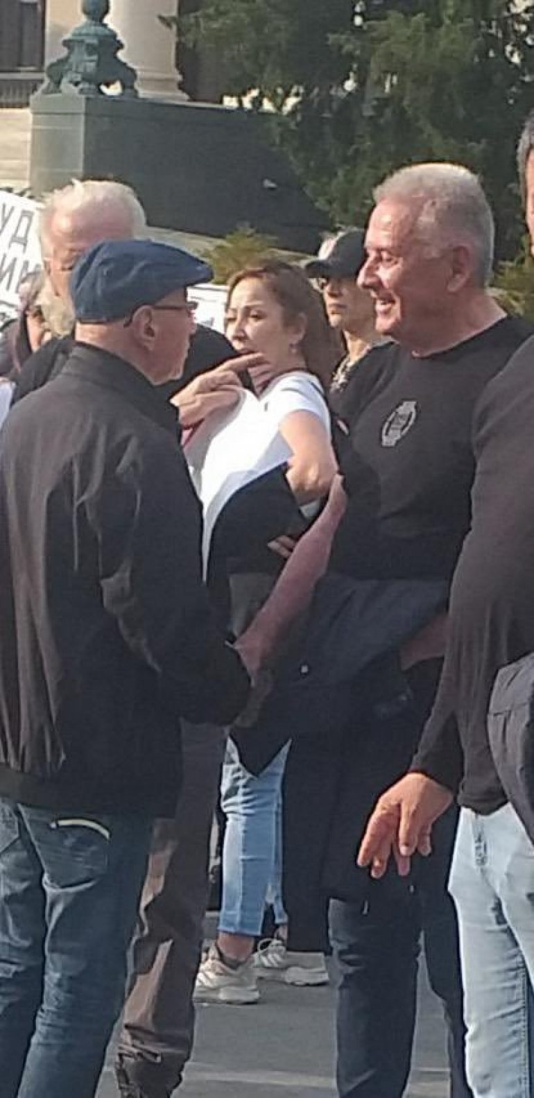Na protestu su Velja Ilić (svojevremeno fizički napao novinara), Savo Manojlović, političar Janko Veselinović, Srđan Nogo koji je pretio vešanjem, Dragan Đilas...