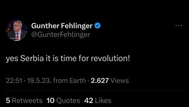 Felinger je takođe na svom tviter nalogu napisao: Da za srpski Majdan, da za rušenje Vučića, da za kraj ruske Srbije, da za evropsku Srbiju.