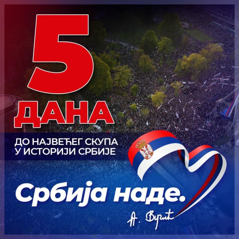 DO velikog narodnog skupa, koji je nedavno najavio predsednik Srbije Aleksandar Vučić, ostalo je još 5 dana.