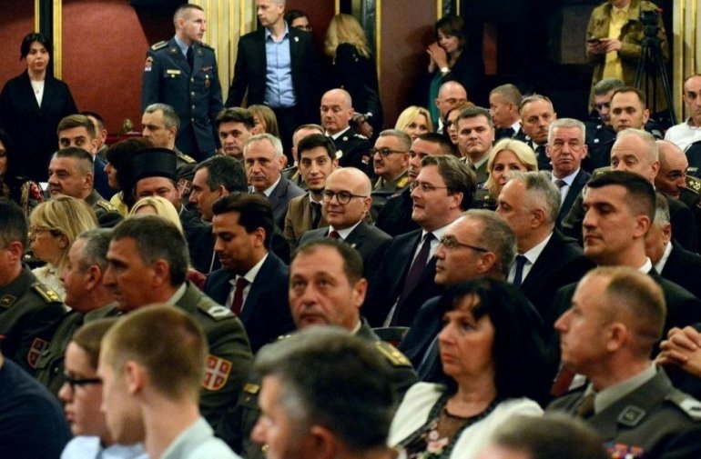 – Danas mi je pripala teška obaveze i istovremeno ogromna čast i odgovornost da stanem na ovu pozornicu i obratim vam se u ime predsednika Republike Srbije gospodina Aleksandra Vučića. Ponekad je veoma teško naći prave reči i u tim momentima tišina je ta koja možda šalje najsnažnije poruke. Kada pogledam u publiku, tišina koja dopire sa praznih 108 mesta u ovoj sali je možda najglasnija i najsnažnija poruka koju je, verujem, bilo ko od nas ikada imao priliku da čuje. U toj tišini mi jasno i glasno možemo da čujemo njihov urlik, ponos, prkos, a istovremeno možemo da osetimo tugu. Tugu što ti nekada mladi, golobradi momci danas nisu ovde sa nama da ponosno stojeći, baš ovde na bini prime pohvale i odlikovanja za svoje zasluge stečene u odbrani otadžbine, kao neko ko je u najtežim vremenima za sve nas pokazao šta znači hrabrost i junaštvo i koliko jaka volja i spremnost da se brani ono što je svoje može da nadjača i najmoćnije sile sveta – naglasio je ministar Vučević.