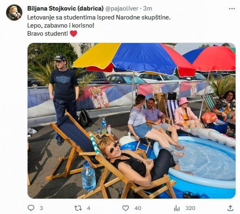 Dakle, opozicija je tugu za decom pretvorila u zabavu, pa tako na društvenim mrežama postavljaju slike iz bazena postavljenog pred Skupštinom.
