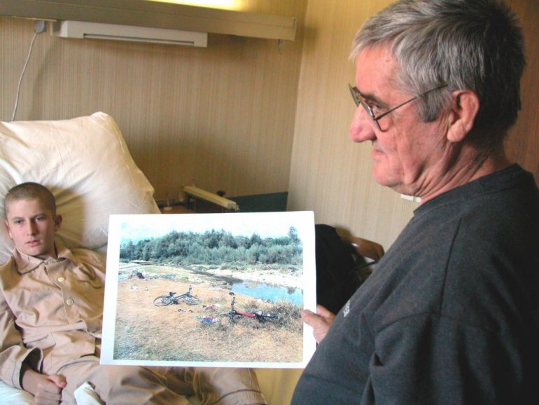 - Voda je bila hladna..., na jednoj strani obale drugari su naložili vatru da peku kukuruz i ja sam im prišao. Nije prošlo ni pet minuta, kada je usledila rafalna paljba. Bio sam bočno okrenut prema napadaču i prva tri metka su me pogodila u levu stranu grudnog koša. Iako nisam bio svestan šta se dešava, i uprkos nesnosnom bolu ostao sam na nogama. U sekundi mi je prošlo kroz glavu da hoću da se okrenem i vidim koji to monstrum puca na nas decu... Tada me je još jedan metak pogodio u stomak, pa još dva iznad grudnog koša. Dok sam padao, sedmu prostrelnu ranu zadobio sam u glavi, dok mi je osmi metak okrznuo članak noge - detaljno opisuje trenutke užasa Bogdan.