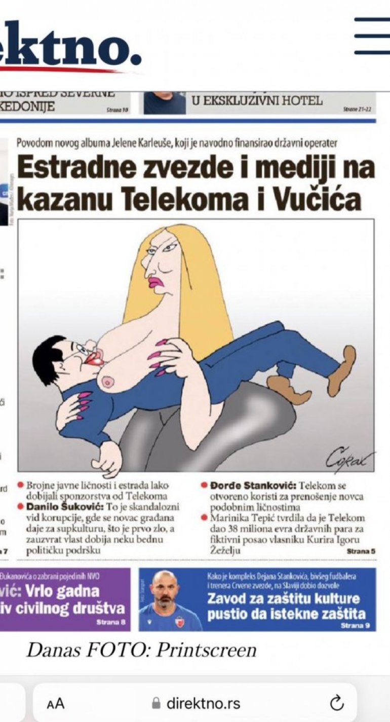 - Sram da bude sve redom, i jadnog potpisnika “karikature”, i jadnike koji su je objavili, i sve one još jadnije kvazi borce za prava i pristojnost koji ćute nad ovim đubretom. U pitanju su promoteri mržnje koji šire mizoginiju i primitivizam, vređaju i omalovažavaju. I nije u pitanju nikakva sloboda izražavanja, već bestidno vređanje ne samo predsednika, već svih žena i majki. Uvredili ste i sve nas koji se iskreno borimo da sve žene u Srbiji budu poštovane i ravnopravne. Ovo je sramno i uznemiravajuće, i molim sve pristojne ljude na javnoj i političkoj sceni da dignu glas protiv ovakvog govora mržnje i sramnog vređanja - navodi Vučević.