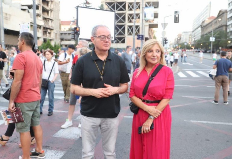 Političari koji organizuju proteste stigli su ispred Vlade Srbije odakle su planirali da krenu u šetnju do televizije Pink.