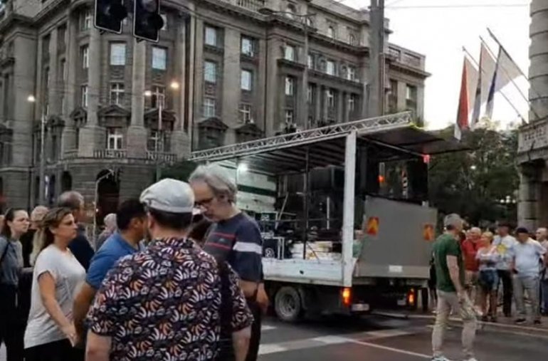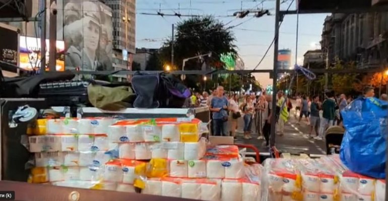 Organizatori protesta doneli su toalet papir koji se trenutno nalazi u kamionu. Oni će planiraju da toalet papir bace na zgradu RTV Pinka.