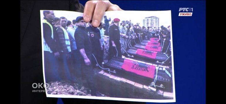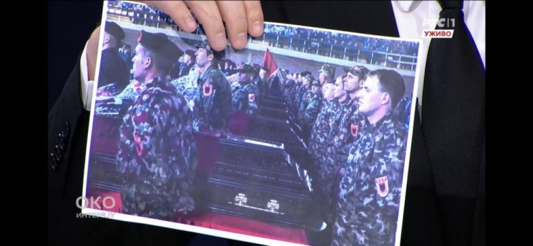 - Pokazaću vam kako izgleda to licemerje kada vam neko drži pridike o evropskim vrednostima, iako se mi držimo njih. Podsetiću vas šta se desilo pre osam godina u Kumanovu, kada su albanski teroristi, pravi teroristi napali međunarodno priznatu suverenu državu Makedoniju, zemlju koja je članica UN, veoma bitan detalj. Poginulo je čak osam policajaca makedonskih. Šta se dogodilo? Tada nam ni Rama niti bilo ko iz EU nije držao pridike - rekao je Vučić i pokazao slike "državne sahrane u Prištini" 2015. godine, u uniformama UČK.