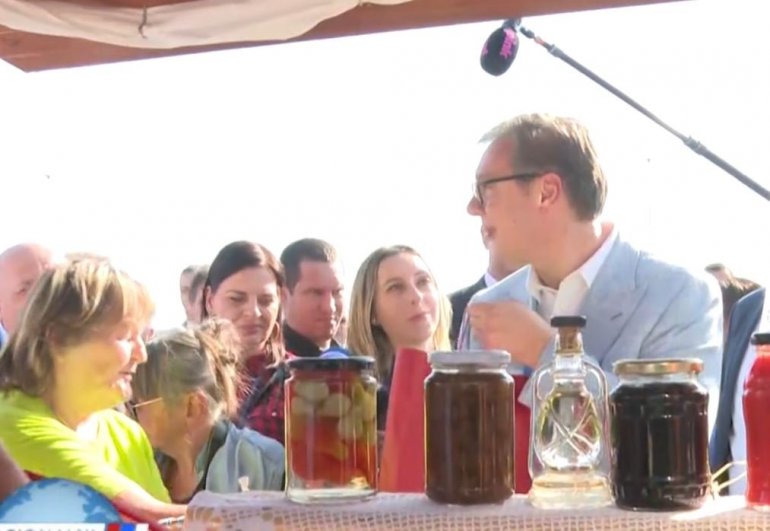 PREDSEDNIK Srbije Aleksandar Vučić danas je na otvaranju auto-puta Ruma-Šabac razgovarao i sa okupljenim građanima i predtsvanicima udruženja koji su došli da ga pozdrave i predstave svoje rukotvorine.