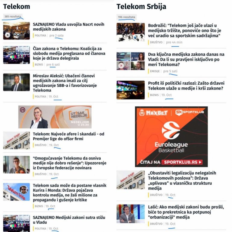Nakon što su protiv Telekoma dve nedelje puštali “samo” dva do tri priloga dnevno, usledila je eskalacija: u 24 sata uoči zasedanja Vlade, a zaključno sa danas u 15 časova, TV N1 i TV Nova S na svojim internet portalima objavile su tačno 26 negativnih priloga o Telekomu, što znači jedan na svaki sat. Kada se uzme u obzir da u toku noći kada ljudi spavaju ne rade, ispada da su ova dva medija zatrpavala publiku pljuvanjima po Telekomu na svakih 30 minuta!