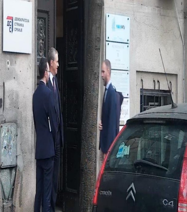 Kako kažu, Miloš Jovanović, lider Novog DSS-a, i njegov šef kabineta Zdravko Veselinov, sastali su se u sedištu stranke sa službenicima političkog odeljenja u Amabasadi SAD u Beogradu Timoti Krobotom, Merilin Mišel i Denisom Ibišbegovićem.