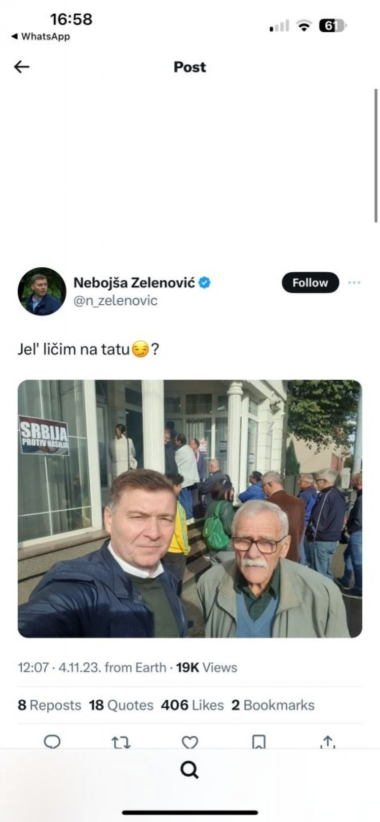 DA Dragan Đilas i lista "Srbija protiv naslja" stoje iza najbolesnije i najprljavije kampanje u istoriji političkog života Srbije potvrdio je objavom Nebojša Zelenović.
