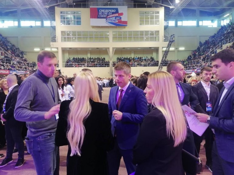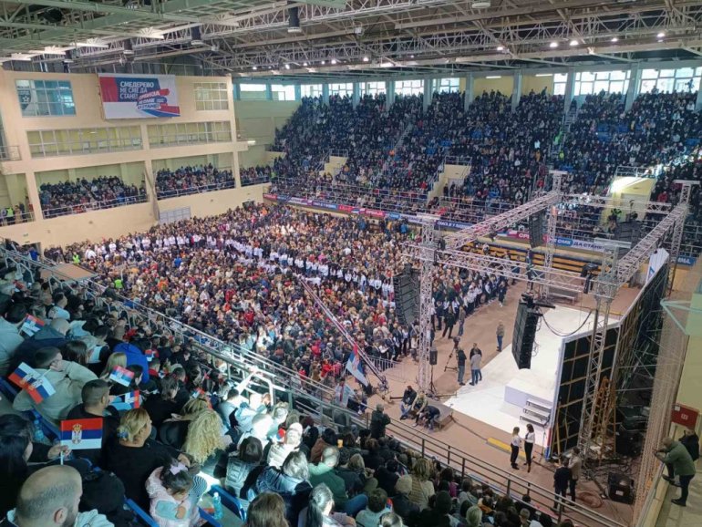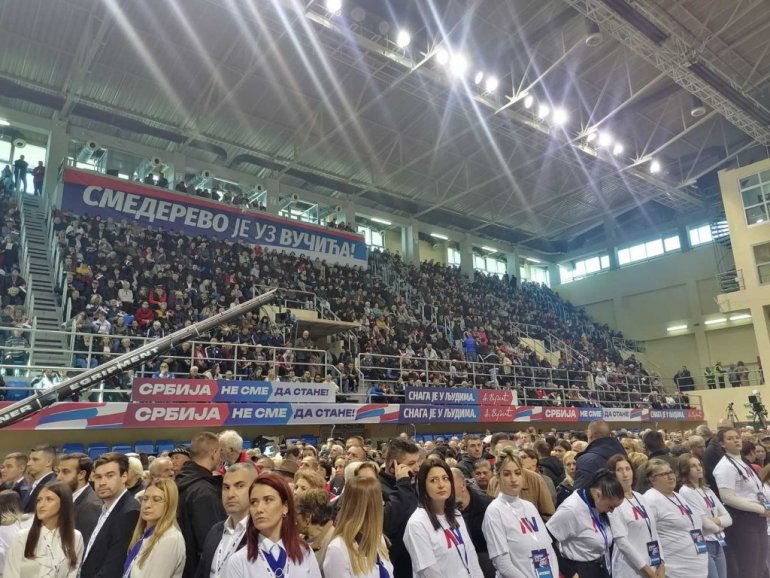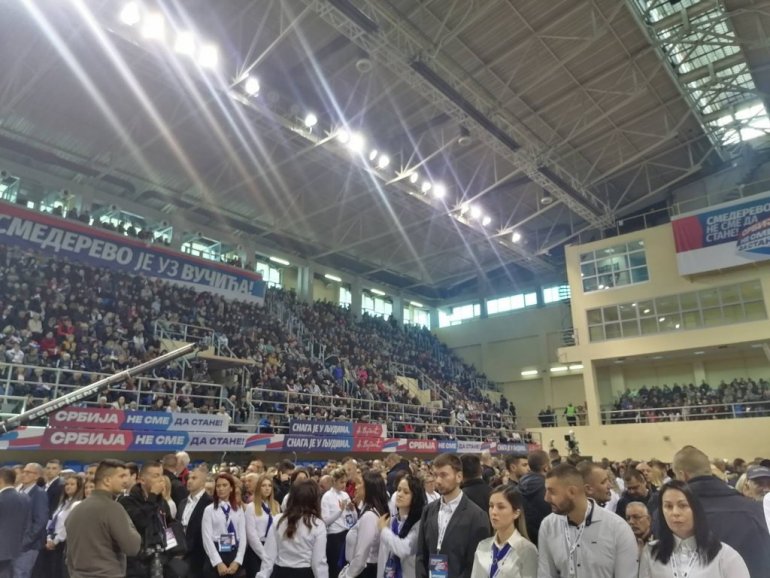 Sat pred početka najavljenog skupa hala u Smederevu u kojoj će miting biti održan već je puna.