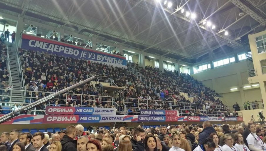 Neverovatna slika stiže iz Smedereva. Naime, više od 3000 ljudi ostalo je ispred hale u Smederevu, jer u hali nije bilo mesto za sve koji su došli da pruže podršku listi "Aleksandar Vučić - Srbija ne sme da stane".
