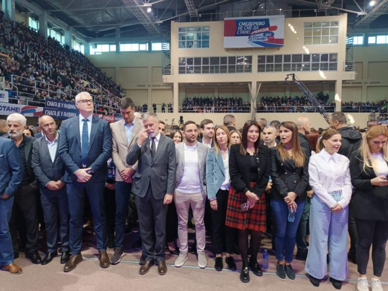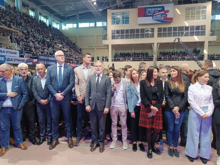 - Beskrajno vam hvala na ogromnoj podršci. Vi ste naša snaga. Takođe to što vređaju sve naše majke i svu našu decu to o njima govori. Mi ćemo zajednički da čuvamo i njihovu decu. Brinućemo o svom narodu ma gde da živi. Živela Srbija! Živelo Smederevo! Živeo Podunavski okrug! Hvala vam najlepše - rekao je predsednik okupljenim građanima ispred hale u Smederevu