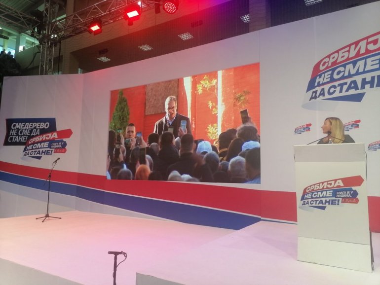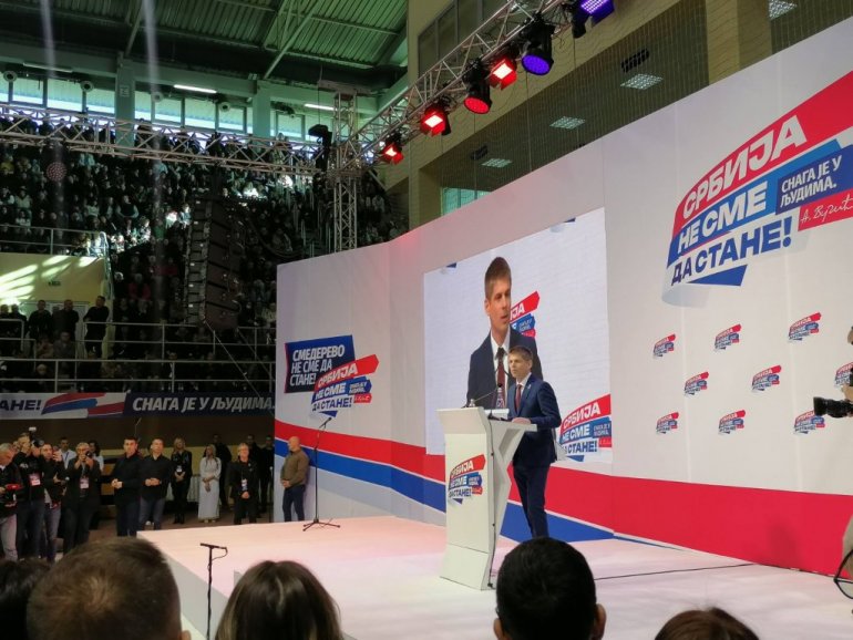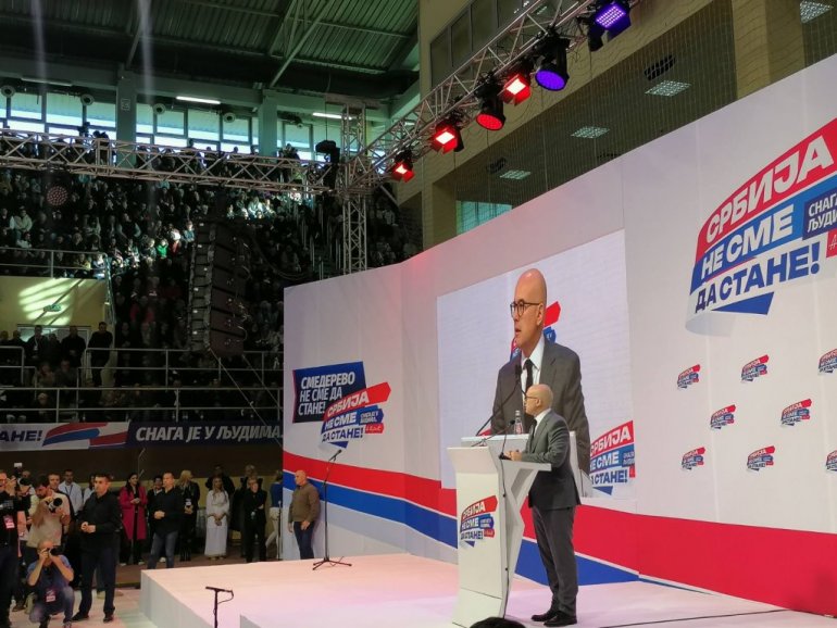 - Zato sam ponosan na to što imamo danas - slobodnu, slobodarsku i nezavisnu Srbiju. Vi ljudi mislite, da je to nešto što je zauvek dato - nije. To se očas posla, dok ste rekli keks, okrene u suprotnom smeru. Kao što su to uradili 2000. godine. Kao što smo od tada imali i ocepljenje i Crne Gore od Jugoslavije, kao što smo imali i ocepljenje Kosova proglašeno 2008. a oni samo tražili, bar iz njihovog ugla, da to ne bude do izbora, a posle izbora "slobodno proglašavajte nezavisno Kosovo", toliko ih je bilo briga za Kosovo. Toliko su se interesovali za to. E to je ono što smo uspeli da promenimo. Da vas pitam, kada su Amerikanci otišli iz "Sartida" i ostavili nam, godinama smo se mučili. Na kraju smo rešili problem. Vi sad mislite da je to zauvek dato? Nadam se, uz naše kineske prijatelje. Jesam li siguran? Nisam. Uvek je potrebno da se borite, da bdite nad tim, da gledate da pomognete radnicima, da saslušate njihove muke i probleme, ali 5300 ljudi danas radi u smederevskoj železari, redovno prima plate, a ne bi primili nijedan jedini dinar da su takvi ostali na vlasti. Koliko decenija nismo uradili put, čestit put od tri metra? Prema Koporinu, Pokajnici, Pinosavi, u Velikoj Plani i u Smederevskoj Palanci? I to nam je bilo teško! I to nismo mogli - valjda skupo tri metra da uradite put. Nismo mogli! Ili su nam male svetinje to? Nedovoljno velike svetinje, pa ne treba puteve da gradimo? Samo zato što ih nije bilo briga? Bilo ih je briga da se oni obogate, to je jedino što im je bilo važno. I tačno je rekao Miloš jednu veoma važnu stvar, na ovim izborima imate samo dve mogućnosti. Jedna je da glasate za Dragana Đilasa, a druga je da glasate za listu "Srbija ne sme da stane". Jer svi ti drugi, makar i govorili da su drugačiji od njih, svi su za listu Dragana Đilasa, i na kraju će biti sa njima. Prošli put kada sam to govorio, mnogi mi nisu verovali. A sada vidite da je sve što sam vam govorio bila sušta istina. Da li sam sam mogao da se ponašam drugačije - pa mogao sam. Da glumim nekoga između, finog, prefinjenog, gospodina, a da u stvari nikada ništa ne uradim za Srbiju. Da budem dovoljno pokvaren koliko su oni bili pokvareni, da nosim bele rukavice, da se šminkam svakoga dana i da kažem "joj što sam lep u ogledalu", a da nikad nijedan put ne izgradim u Srbiji, nijednu bolnicu da ne izgradim u Srbiji. Uzgred i bolnicu Stefan Visoki u Palanci, i Smederevsku bolnicu, ne samo da ćemo da rekonstruišemo, već i u potpunosti da izgradimo, a već u februaru i martu dobijate magnetnu rezonancu ovde, u Smederevskoj bolnici, da nema potrebe da idete u Beograd. Kroz Planu i Palanku, prolaziće brzi voz ka Nišu. Ovde radimo sve projekte oko kanalizacije, čiste Srbije, prečistača otpadnih voda, i svega drugog što je potrebno. Rsdićemo na dovođenju daljih investitora. Ne zaboravite, kada sam prvi put došao u Smederevo, skoro niko nije radio. Pa sam prvo doveo kompaniju iz Finske, pa onda jednu, pa drugu, pa treću, pa rešavajte problem železare i sve druge muke i probleme. I danas to izgleda lako. Danas bi ponovo da se vrate ovi koji su zemlju uništili. Jer misle ima para, ali za njih. A vaše pare ponovo bi brzinom munje nestale. Ne smemo to da dozvolimo ni zbog mladih ljudi, ni studenata, ni onih koji dolaze. Ni onih koji su završili osnovnu i srednju školu, a koji hoće da rade na selu. Ti mladi ljudi su naša budućnost. Zato i studentske kartice, zato i rekordno niska nezaposlenost, ali moramo još da radimo, još da vidimo što je na mlade ljude potrebno da se uradi i u to novac da ulažemo.
