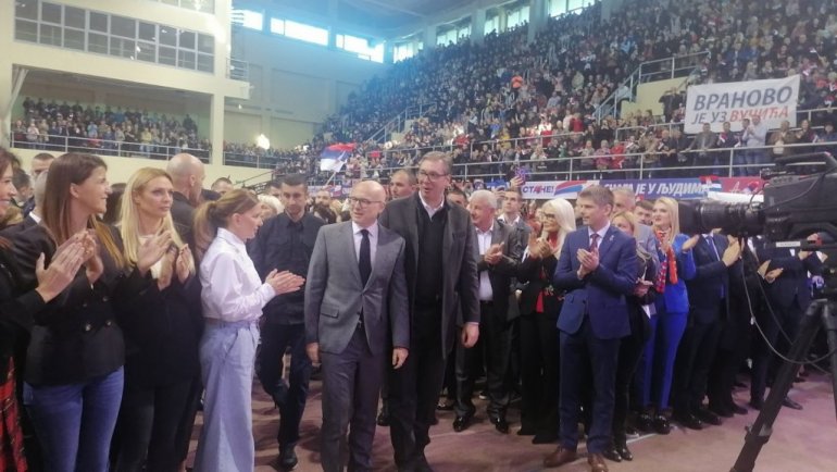 - Pozivam vas da izađemo na izbore, da kažemo - da mi brinemo o Srbiji, da, zato donosimo mamografe i magnete, da, hoćemo da imamo zdrave ljude, zdrave žene, majke, sestre, da, hoćemo da imamo zdravu decu, hoćemo da nam deca imaju posao i hoćemo da se borimo za to. I nećemo vama samo zato što ste bahati, samo zato što ste katančili naše fabrike i samo zato što pretite, nećemo da vam se sklanjamo, nećemo da bežimo jer mi drugu otadžbinu nemamo i borićemo se za svoju Srbiju. Borićemo se i izborićemo se i pobedićemo ih 17. decembra. Do pobede, za Srbiju našu - Srbija ne sme da stane! Do pobede - živela Srbija! - zaključio je Vučić.