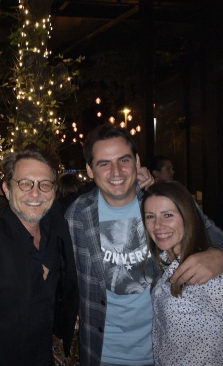 DRAGAN Bjelogrlić i Zoran Kesić slikali su se na promociji filma sa suprugom Predraga Koluvije.