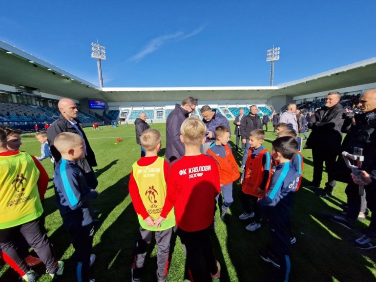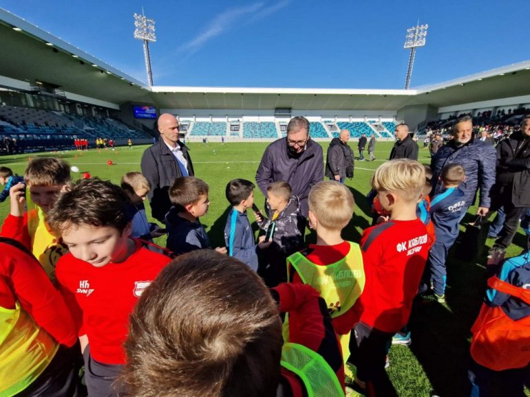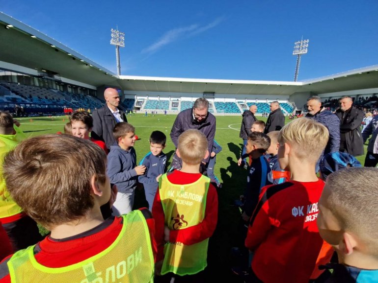 PREDSEDNIK Srbije, Aleksandar Vučić dana je prisustvovao otvaranju stadiona "Kraljevica" u Zaječaru. Ono što predsednika svakog puta posebno obraduje, jesu brojni mališani, koji su ga sa ushićenjem čekali da dođe.