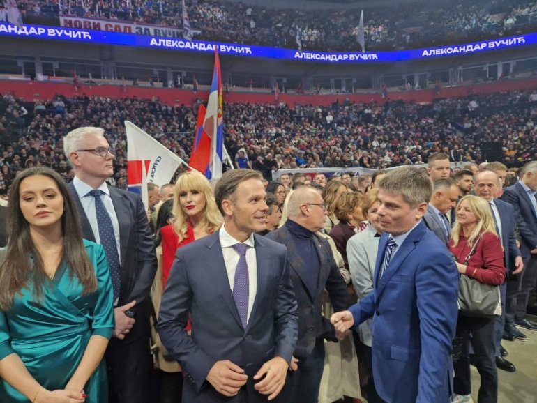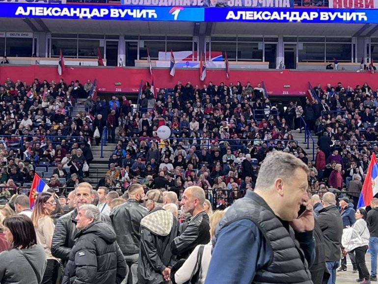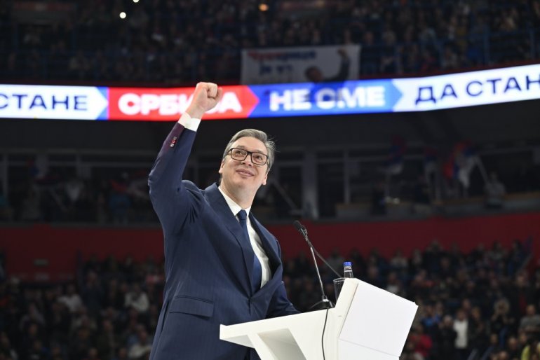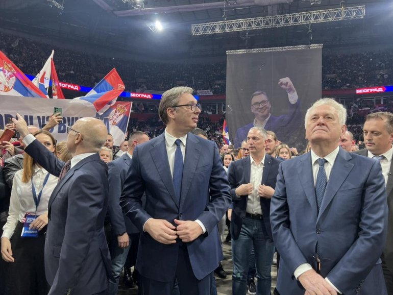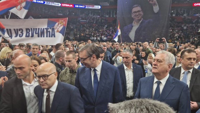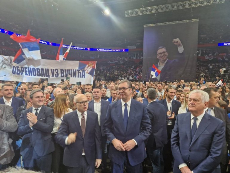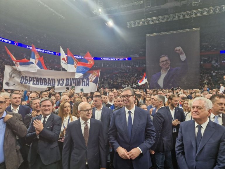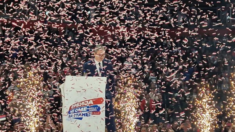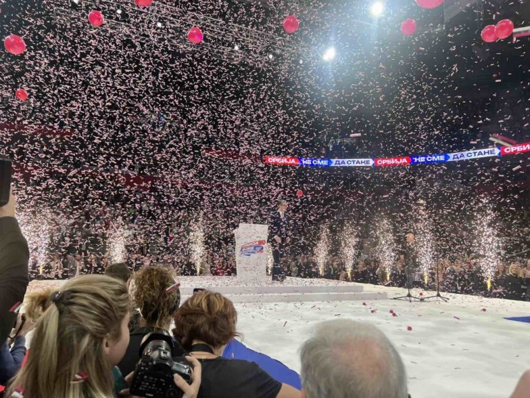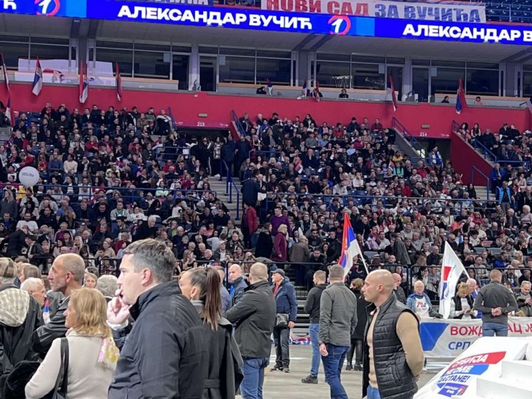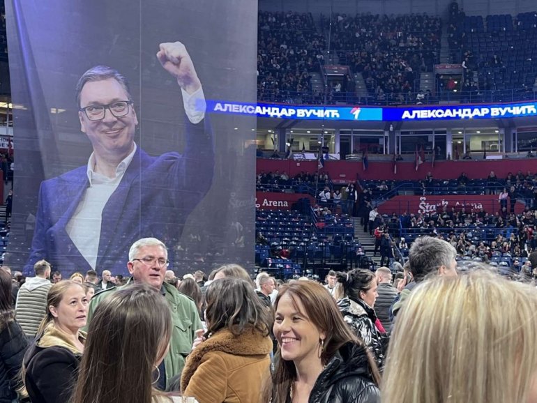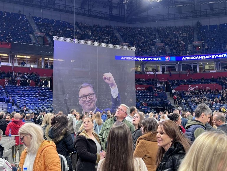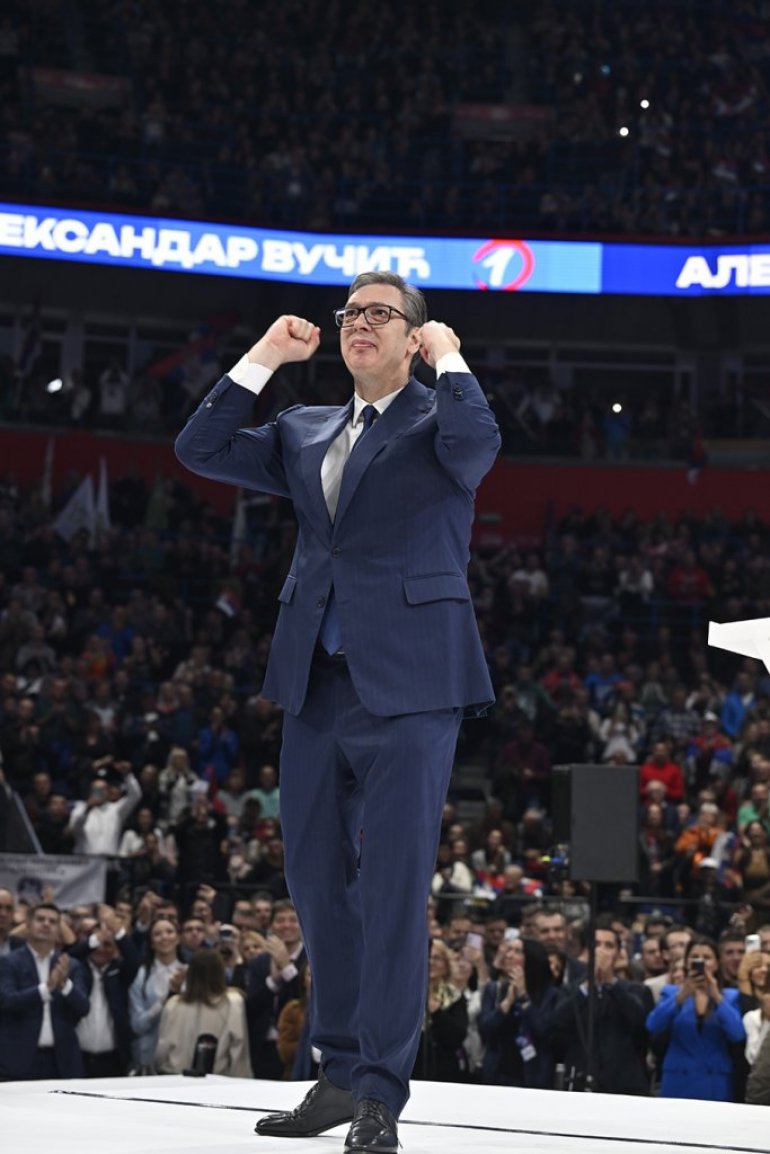 - Uz vašu energiju i snagu, vi ste snaga Srbije. Bez vas, mi nismo ništa. Na noge Arena, hajmo svi, za pobedu! Za pobedu 17. decembra, za pobedu ubedljiviju nego ikada. 50 odsto moramo da dobijemo, više nego oni svi, da ih pobedimo da Srbija ima budućnost. Naredne četiri godine su najvažnije. Hvala vam za svu vašu ljubav, energiju. Sve najbolje želim vašim porodicama, a u nedelju 17. da slavi pristojna, normalna, pobednička, naša Srbija. Živela Srbija, mnogo vas volim, beskrajno vam hvala - zaključio je predsednik.