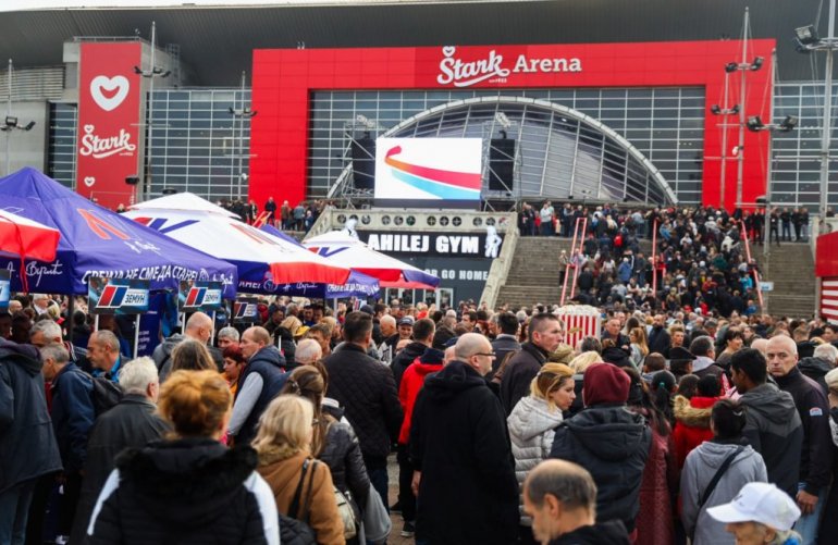 Desetine hiljada ljudi ostalo je ispred Arene, u koju ne mogu da uđu jer je Arena već napunjena.