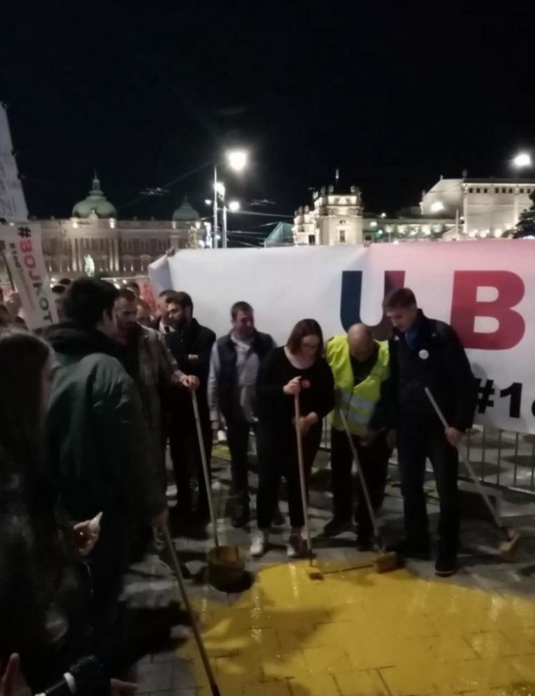 U spotu liste Srbija protiv nasilja svoje mesto našle su čuvene kocke, tačnije ugao Francuske ulice i Trga Republike. Iste one kocke koje su predstavnici opozicije farbali u žuto, u okviru svojih političkih performansa. Jer i to je tada bilo loše i ružno, a danas valja za promotivni spot?!